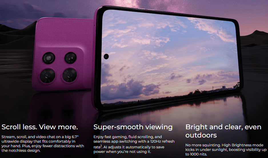 ディスプレイ6.7インチIPS LCD、FHD+、120Hzリフレッシュレート対応