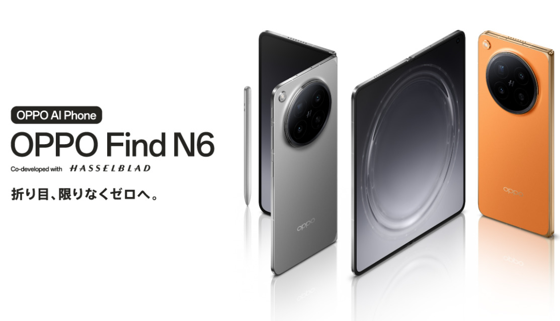 日本における横折りスマホ市場ではGalaxy Z Fold7やPixel 10 Pro Foldが最新機種となっていますが、OPPO Find N6はそれらを上回る最先端モデルとなります。価格面でもサムスンやGoogleの折り畳み機より安くなりそうです。