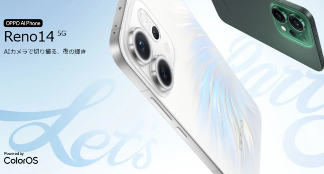 オウガ・ジャパンがOPPO Reno14 5Gを正式発表しました。発売は7月17日以降となり、MVNOや量販店等でSIMフリー機とし...